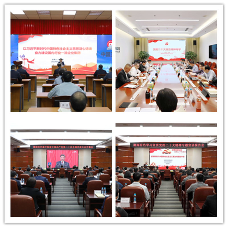黨的二十大勝利召開(kāi)以來(lái),中國(guó)五礦黨組堅(jiān)持把學(xué)習(xí)宣傳貫徹黨的二十大精神作為首要政治任務(wù),召開(kāi)學(xué)習(xí)宣貫專題會(huì),制定《集團(tuán)公司黨組學(xué)習(xí)宣傳貫徹黨的二十大精神工作方案》,推動(dòng)各級(jí)黨組織抓好貫徹落實(shí)。各級(jí)黨組織通過(guò)多種方式迅速掀起黨的二十大宣貫熱潮。為推廣典型經(jīng)驗(yàn),打造黨的二十大精神學(xué)習(xí)交流的“第一課堂”,集團(tuán)公司開(kāi)辟專欄,持續(xù)報(bào)道所屬企業(yè)學(xué)習(xí)宣傳貫徹黨的二十大精神的重要舉措、特色做法和取得的成效,供學(xué)習(xí)交流借鑒。本期主要刊發(fā)所屬湖南有色、五礦資本、五礦地產(chǎn)、中鎢高新、長(zhǎng)沙礦冶院的學(xué)習(xí)情況。湖南有色黨委以最快速度、最強(qiáng)力度、最大深度、最堅(jiān)決的行動(dòng)推動(dòng)黨的二十大精神落地生根。一是領(lǐng)會(huì)精髓要義,弄明白“學(xué)什么”的問(wèn)題。組織全系統(tǒng)黨員干部員工集中收看開(kāi)幕會(huì)盛況;第一時(shí)間策劃推出主題宣傳展板;緊緊圍繞“9個(gè)緊密聯(lián)系”“7個(gè)聚焦”細(xì)化制定《湖南有色學(xué)習(xí)宣傳貫徹黨的二十大精神工作方案》、擬定學(xué)習(xí)目錄,扎實(shí)開(kāi)展學(xué)習(xí),全面準(zhǔn)確把握黨的二十大在政治上、理論上、戰(zhàn)略上、制度上、實(shí)踐上取得的一系列重大成果。二是講求學(xué)習(xí)效果,搞清楚“怎么學(xué)”的問(wèn)題。認(rèn)真組織參加國(guó)務(wù)院國(guó)資委黨委、集團(tuán)公司黨組、湖南省委組織的多場(chǎng)宣講報(bào)告會(huì)。充分發(fā)揮“領(lǐng)頭雁”效應(yīng),黨委中心組兩次專題學(xué)習(xí),邀請(qǐng)湖南省委宣講團(tuán)成員輔導(dǎo)授課,并以聯(lián)學(xué)方式覆蓋至所屬企業(yè);黨委書(shū)記帶頭赴基層宣講黨的二十大精神。在各宣傳平臺(tái)顯著位置推出黨的二十大專題專欄,策劃開(kāi)展“喜慶二十大 奮進(jìn)新征程”主題晚會(huì)、籃球賽、演講賽等形式多樣的特色活動(dòng),提升學(xué)習(xí)效果。三是堅(jiān)持學(xué)用結(jié)合,解決好“怎么干”的問(wèn)題。將學(xué)習(xí)宣貫黨的二十大精神同深入學(xué)習(xí)踐行“五大核心要義”,推動(dòng)“五大行動(dòng)計(jì)劃”和“五型五礦”建設(shè)結(jié)合起來(lái),先后舉辦了湖南有色首場(chǎng)優(yōu)秀青年科技(管理)論文成果發(fā)布會(huì)、統(tǒng)戰(zhàn)人士座談會(huì)、青年黨員團(tuán)員互訪互鑒等活動(dòng),推動(dòng)黨的二十大精神進(jìn)車間、入班組、到崗位。?