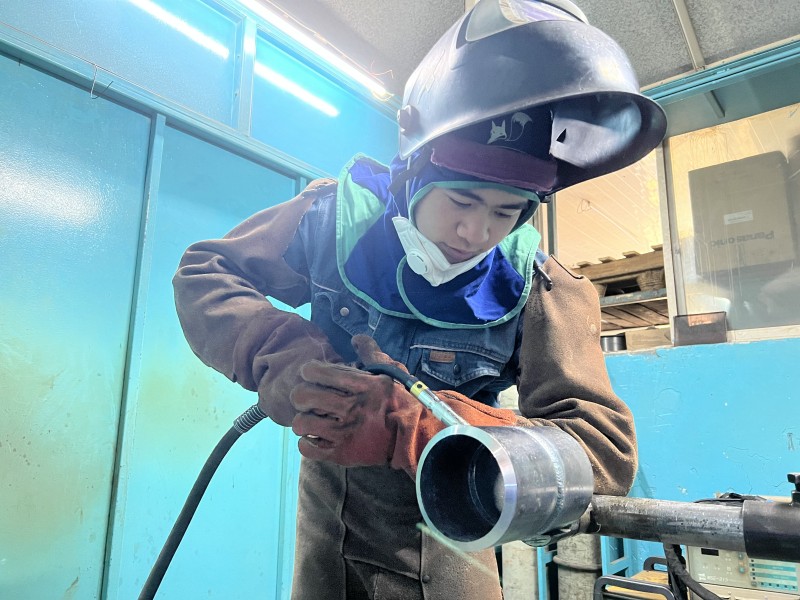 參賽選手及教練團隊在大賽閉幕式現場合影留念 “礦心計劃”學子吳宗山日常焊接訓練
